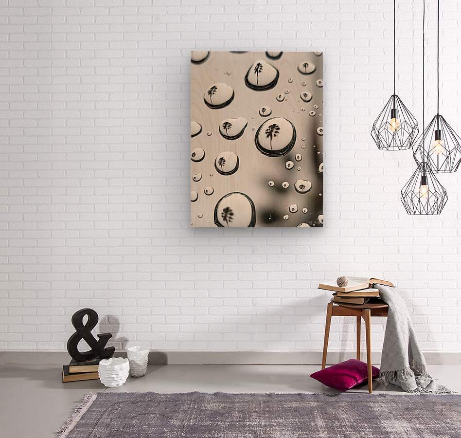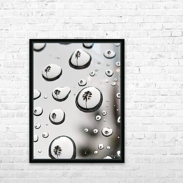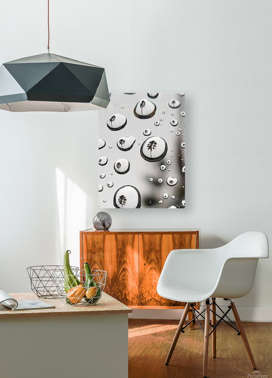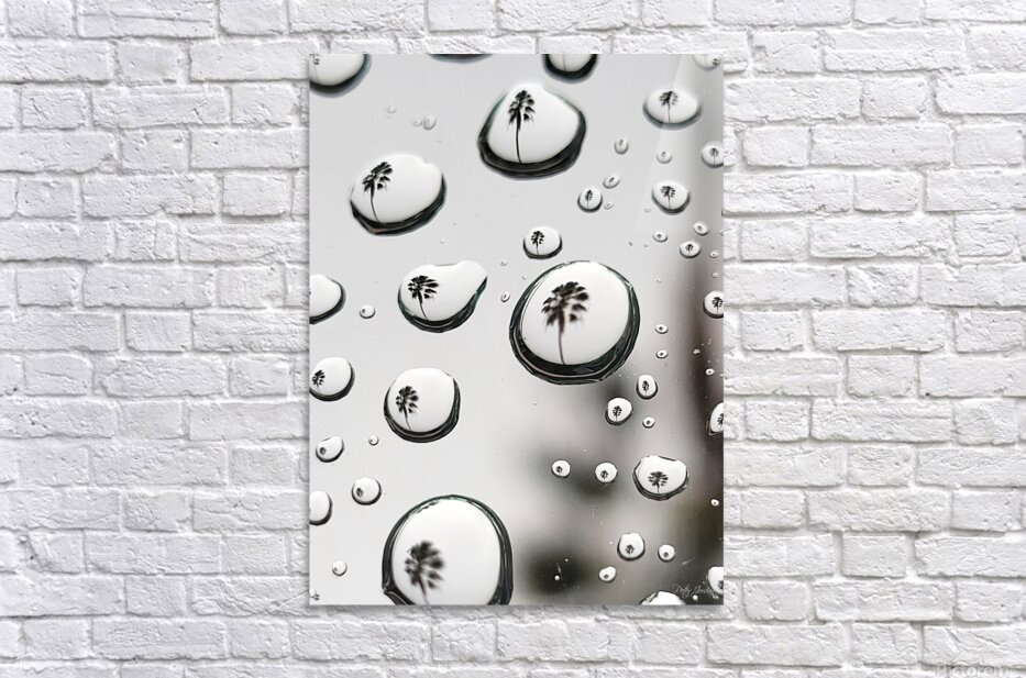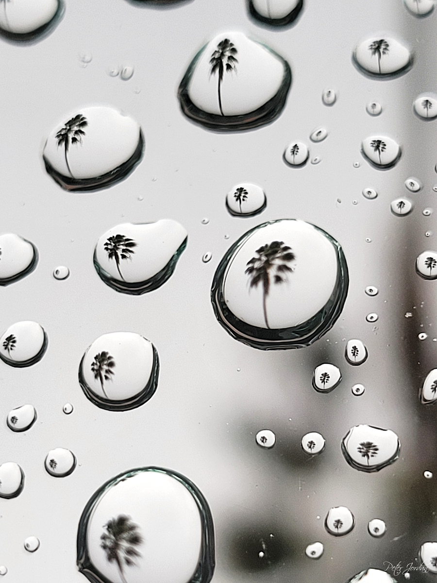 "Palm Tree reflected in raindrops."