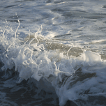 "Foam splash with strands of sea foam and sea water expelled from a very small wave as it encounters outgoing water from a previous wave. Highlighted by early morning sun, this is one of a series that focuses on these small, but unique and visually interesting events."