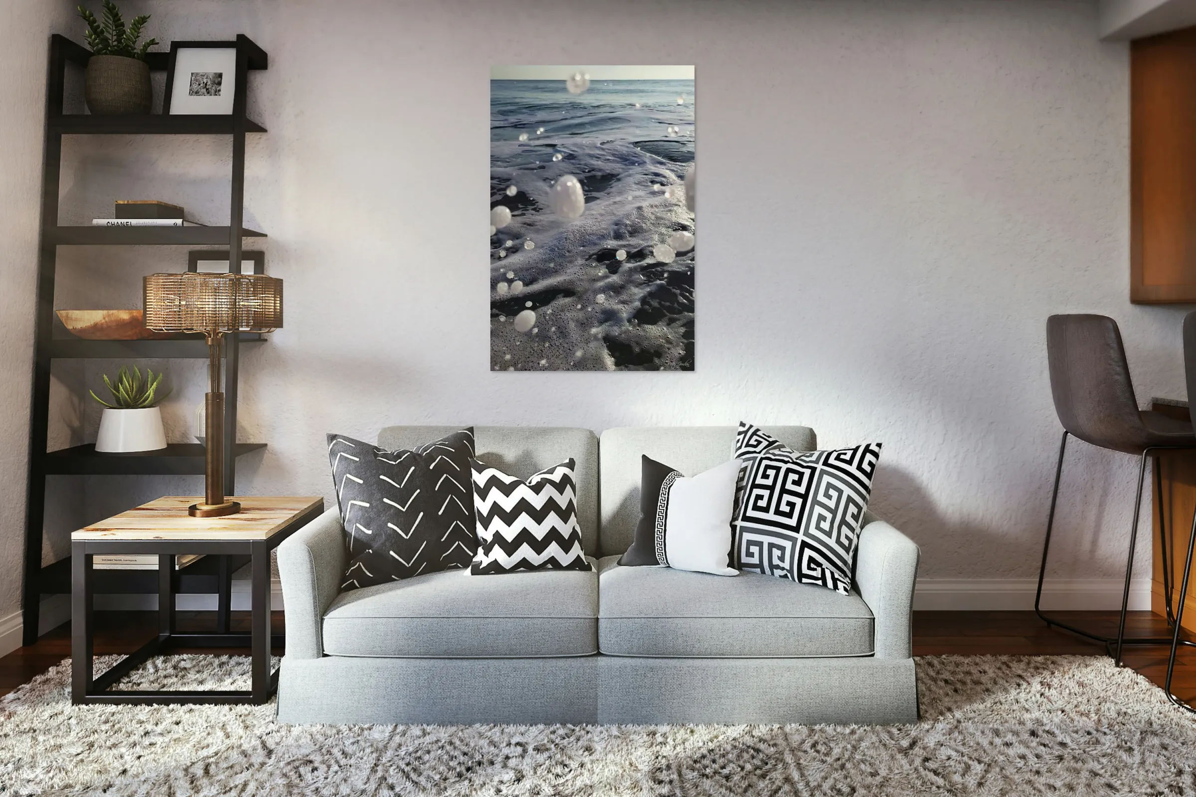 Printed to the edge - Ready to hang - provided with 4 premium polished aluminum stand off ( wall screws and mounting hardware provided )
