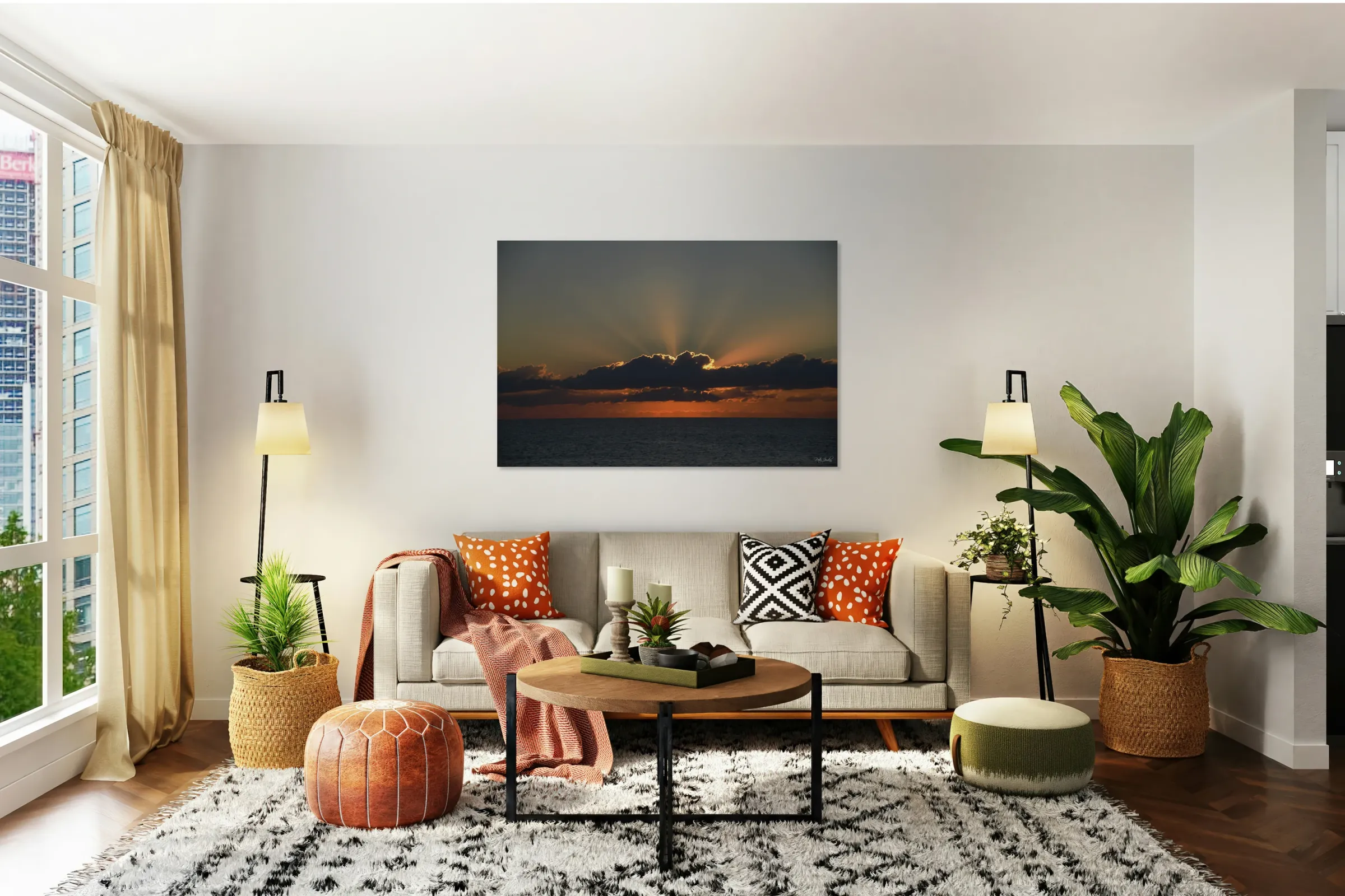 Printed to the edge - Ready to hang - provided with 4 premium polished aluminum stand off ( wall screws and mounting hardware provided )